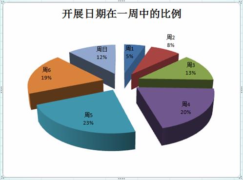 從統(tǒng)計的角度,我們?nèi)?010年的會做樣本,看看一周的哪天是大家最選擇的開展日期: