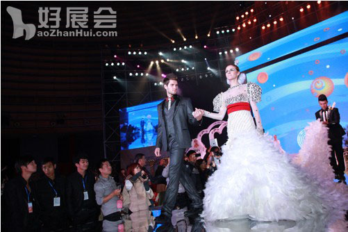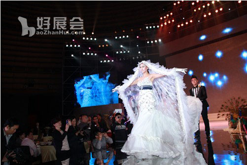 12月7日晚上,在會議閉幕式上,舉辦了2012春展婚禮婚紗潮流趨勢發(fā)布會,由專業(yè)模特穿著各種新款婚紗在業(yè)界同仁面前作了展示。廣西永恒集團還投入百萬巨資,選用真人布置實景,作了一場婚慶典禮的表演,讓參會的代表們領(lǐng)略了時尚婚禮、潮流裝飾的風(fēng)采,也引領(lǐng)業(yè)界將婚紗攝影與婚慶典禮、喜宴服務(wù)結(jié)婚起來,為滿足人們?nèi)罕姴粩嗵岣叩奈镔|(zhì)文化需求作出貢獻。