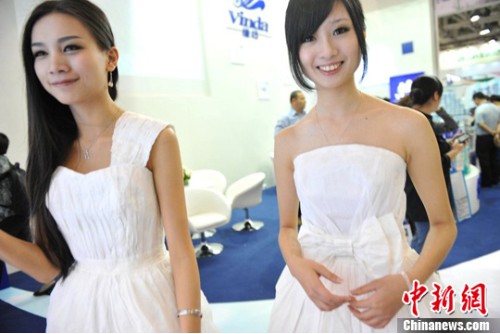 2012年4月18日,廈門市國際會(huì)展中心展廳里,一場(chǎng)紙業(yè)展覽會(huì)舉行,吸引眾多紙業(yè)商家參展。模特穿著用衛(wèi)生紙做成婚紗禮服,展示紙巾產(chǎn)品。(來源:中新網(wǎng))