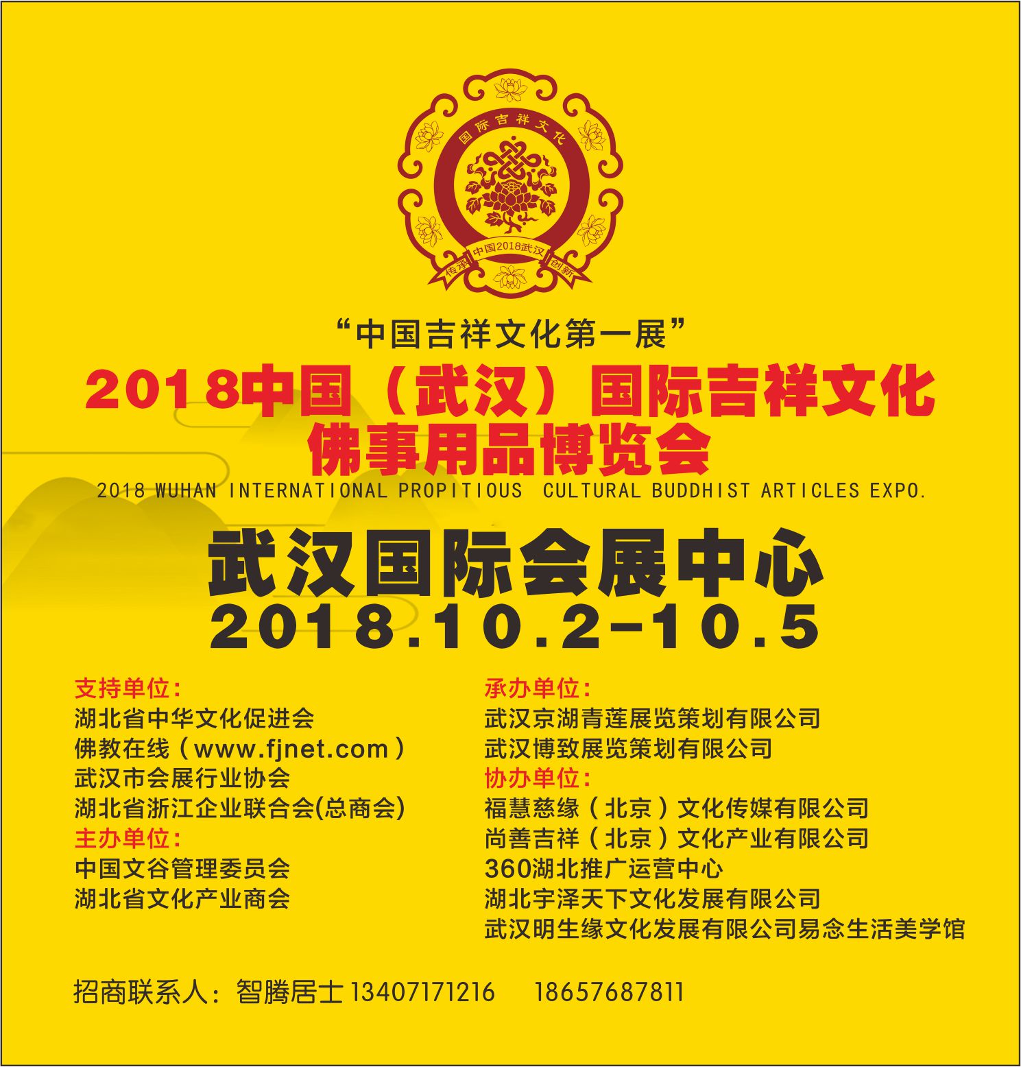 武漢佛事展倒計(jì)時(shí)60天,感謝“佛教在線”、“佛寶網(wǎng)”、“弘慧網(wǎng)”、“三寶地云寺院APP”等行業(yè)權(quán)威媒體的戰(zhàn)略合作和全面支持。