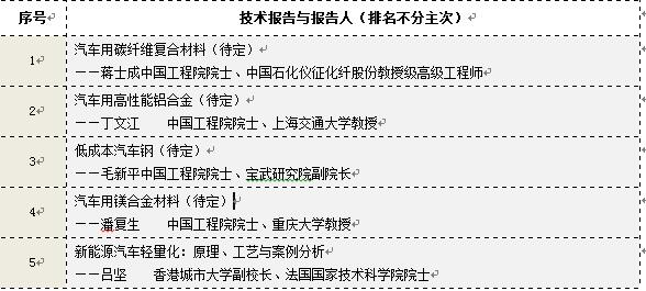針對汽車輕量化新產品、新技術,將組織10項新專題發(fā)布會。