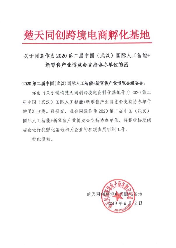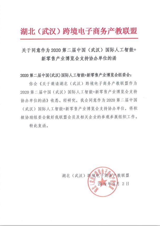 組委會(huì)消息,湖北省楚商聯(lián)合會(huì)跨境電商分會(huì)、湖北(武漢)跨境電子商務(wù)產(chǎn)教聯(lián)盟和楚天同創(chuàng)跨境電子商務(wù)孵化基地接受邀請,支持協(xié)辦2020第2屆中國(武漢)國際人工智能+新零售產(chǎn)業(yè)博覽會(huì)(簡稱:武漢AI新零售展)。三大行業(yè)機(jī)構(gòu)將積極協(xié)助組委會(huì)做好協(xié)會(huì)會(huì)員及相關(guān)企業(yè)的參觀參展組織工作,共同搭建采購交流平臺(tái),推動(dòng)行業(yè)健康發(fā)展!