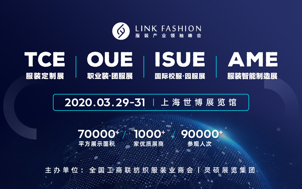 由中華全國工商聯(lián)紡織服裝業(yè)商會(huì)與靈碩展覽集團(tuán)主辦的“2020 全球服裝產(chǎn)業(yè)領(lǐng)袖峰會(huì)”融合旗下四大品牌展會(huì)TCE 服裝定制展,OUE 職業(yè)裝 • 團(tuán)服展,ISUE 國際校服 • 園服展,AME 服裝智能制造展,將于 2020 年 3 月 29-31日在上海世博展覽中心舉行, 超過 70000 ㎡展示面積,1000+優(yōu)質(zhì)參展商,90000+ 參觀人次,超 20 場(chǎng)會(huì)議活動(dòng)。 屆時(shí)將匯聚國內(nèi)外紡織服裝行業(yè)精英領(lǐng)袖,傾力打造全球服裝產(chǎn)業(yè)頂級(jí)盛會(huì)。